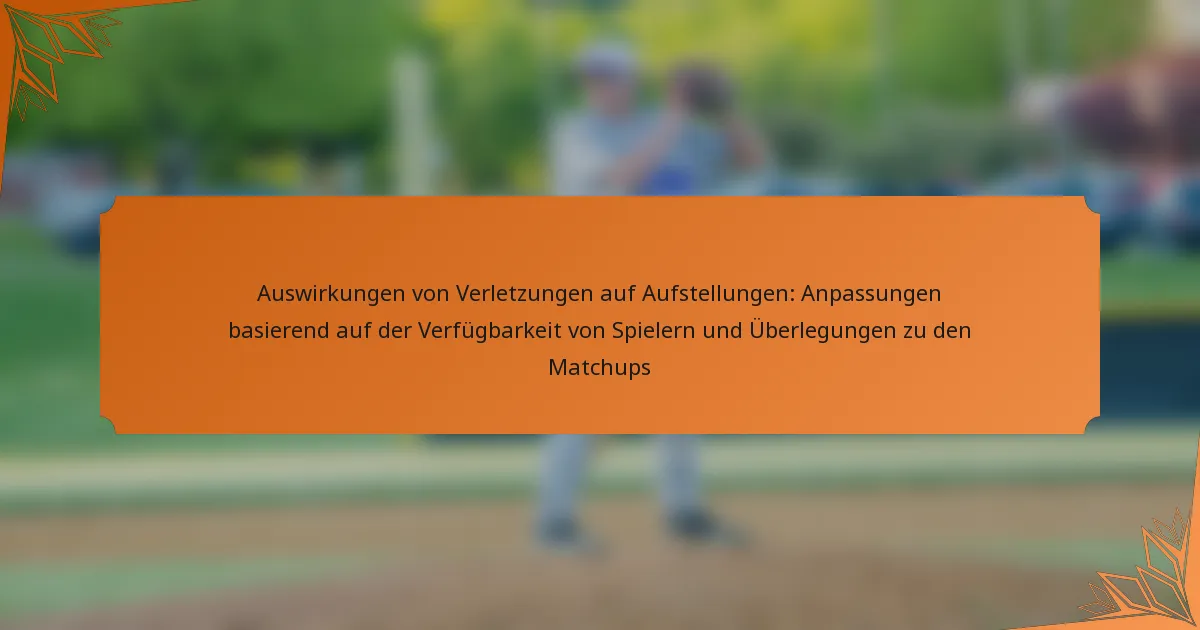Verletzungen können die Aufstellungen von Teams dramatisch verändern, was sich auf die Verfügbarkeit der Spieler und die allgemeine Teamdynamik auswirkt. Um eine wettbewerbsfähige Leistung aufrechtzuerhalten, müssen Teams ihre Aufstellungen strategisch anpassen, wobei sie nicht nur den Status verletzter Spieler, sondern auch die Stärken und Schwächen ihrer Gegner berücksichtigen. Effektives Management der Aufstellung ist entscheidend, um diese Herausforderungen zu meistern und die Erfolgschancen des Teams in jedem Spiel zu erhöhen.